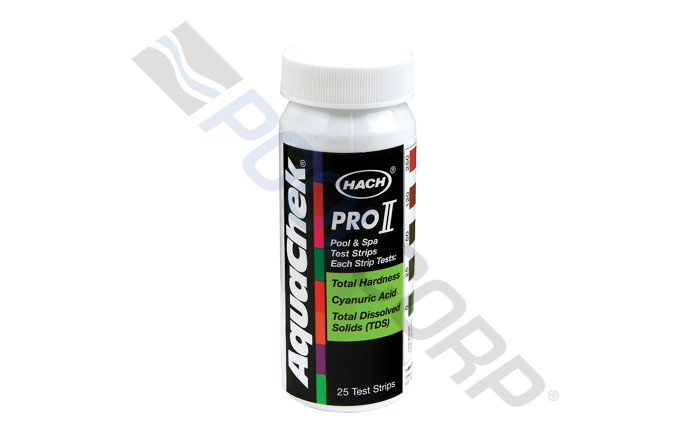 Hach 512084 AquaChek(R) Pro II 4-In-1 Test Strip; Cyanuric Acid/Total Dissolved Solids/High and Low Range Hardness Testing; 25 Strips/Bottle; 6 Bottles/Case