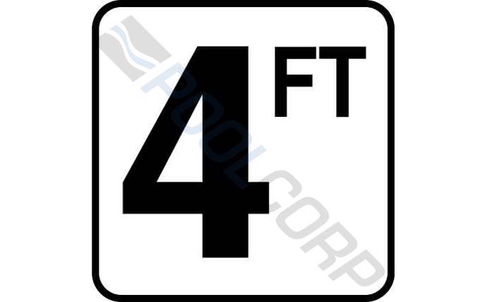 Inlays; V620040 FT Series Skid Resistant Pool Deck Depth Marker; 4FT; 6 x 6″ Tile; 1/32″ Thick; Vinyl Stick-On White Tile with Black Legend; 4″ Letter